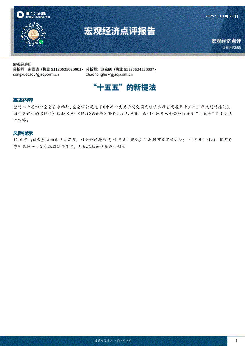 国金证券-宏观经济点评报告:“十五五”的新提法-251023