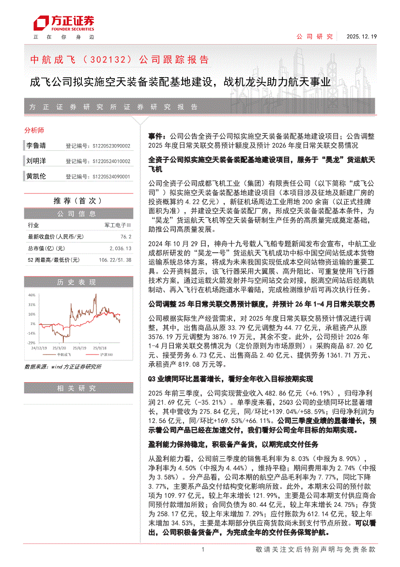 中航成飞:方正证券-中航成飞-302132-公司跟踪报告:成飞公司拟实施空天装备装配基地建设,战机龙头助力航天事业-251219