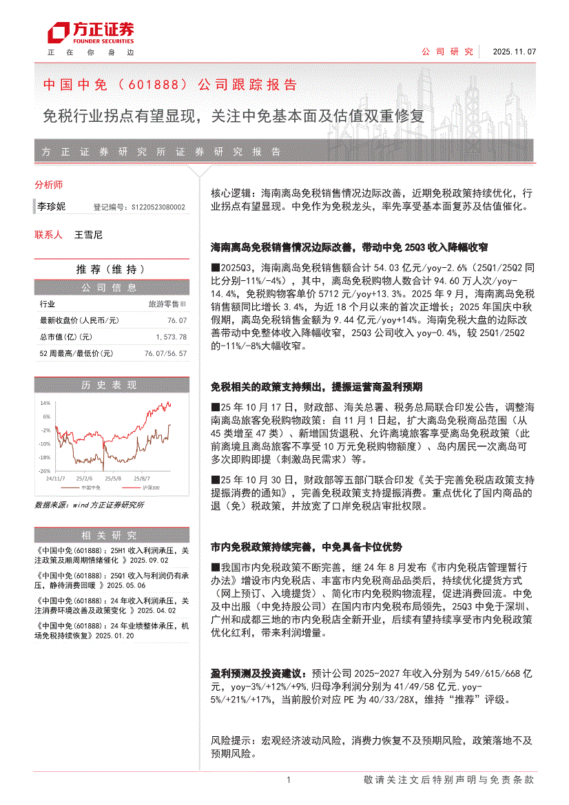 方正证券-中国中免-601888-公司跟踪报告:免税行业拐点有望显现,关注中免基本面及估值双重修复-251107