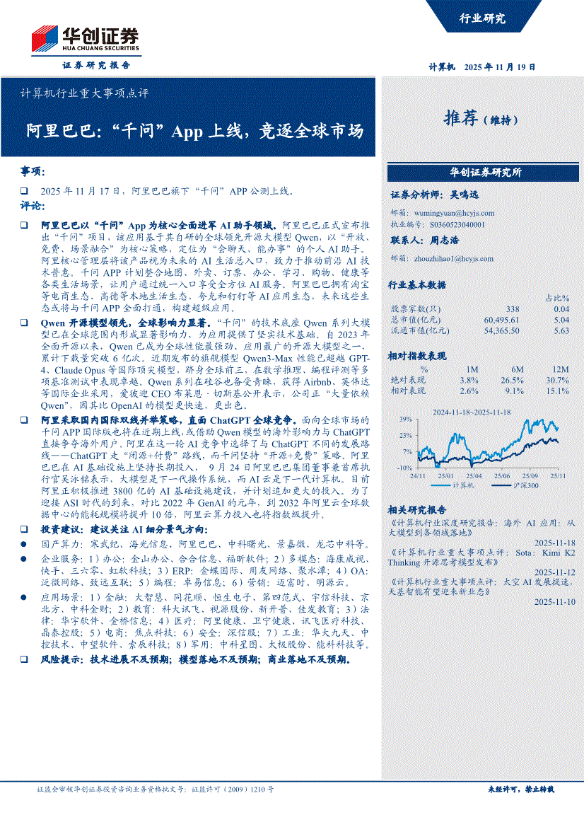 计算机行业:华创证券-计算机行业重大事项点评:阿里巴巴,“千问”App上线,竞逐全球市场-251119