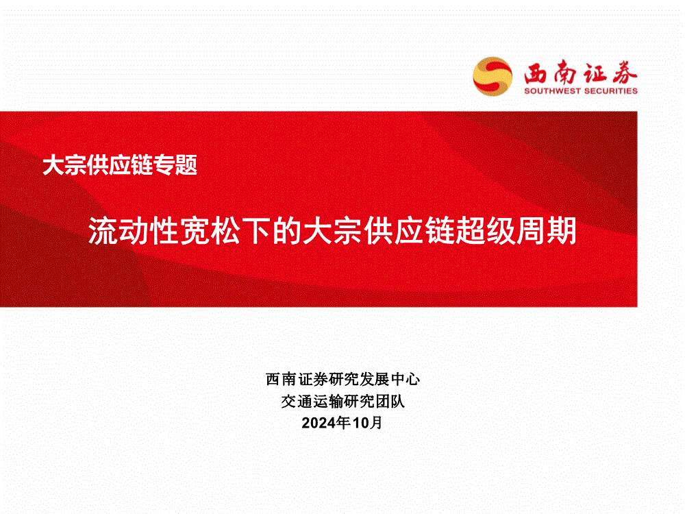 交通运输行业:西南证券-交通运输行业大宗供应链专题:流动性宽松下的大宗供应链超级周期-241010