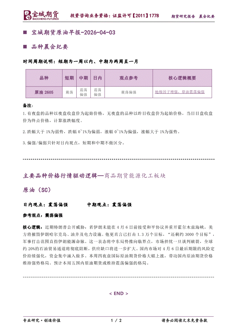 宝城期货-原油早报-260403
