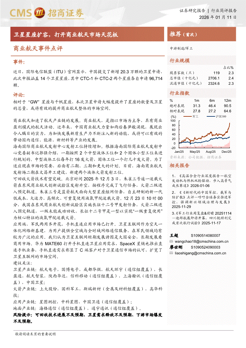 军工行业:招商证券-军工行业商业航天事件点评:卫星星座扩容,打开商业航天市场天花板-260111