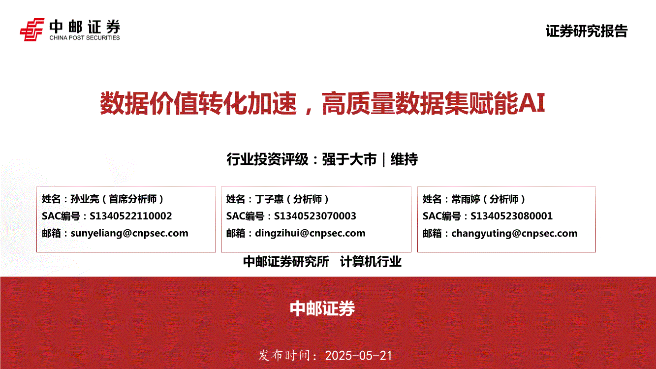 计算机行业:中邮证券-计算机行业:数据价值转化加速,高质量数据集赋能AI-250521