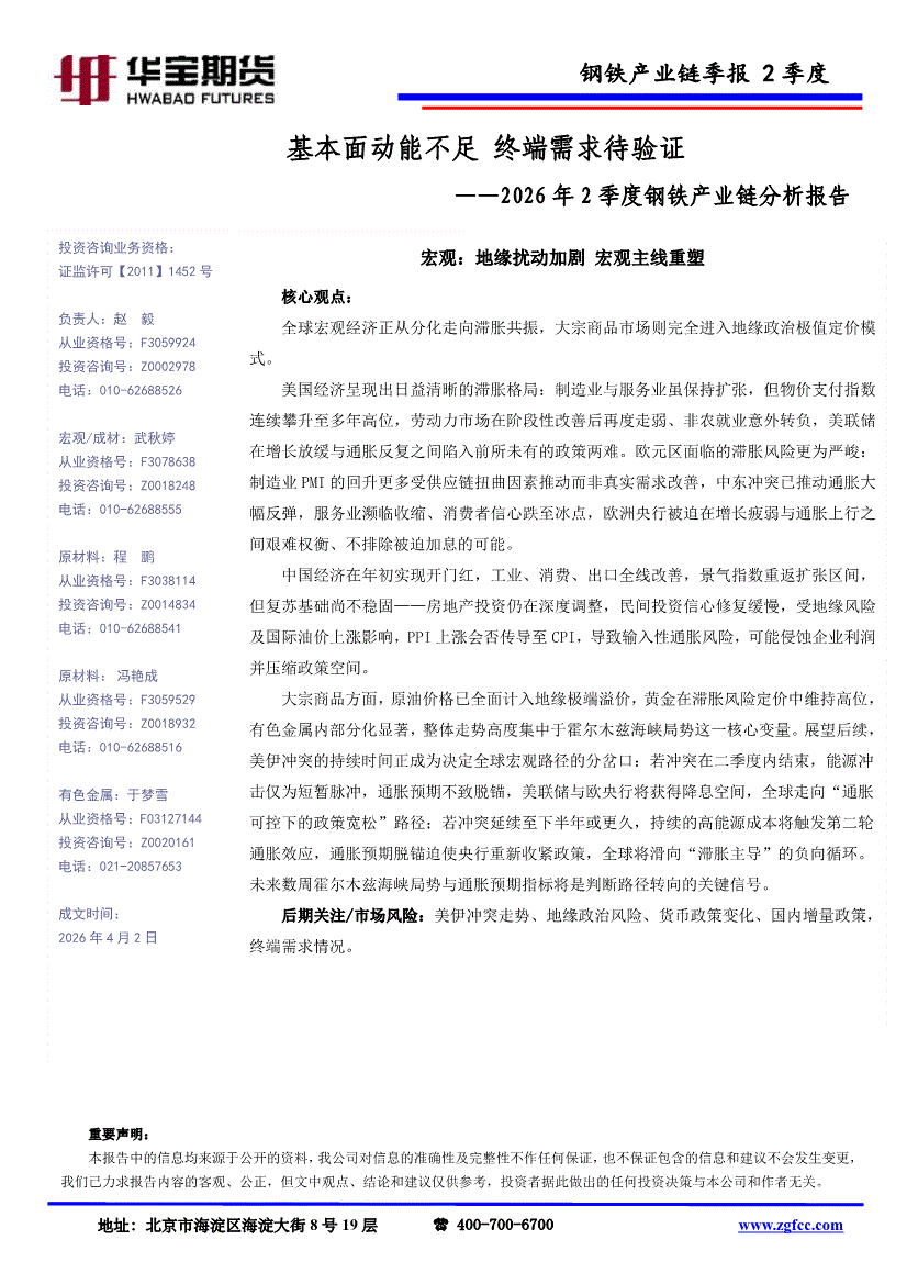 华宝期货-2026年2季度钢铁产业链分析报告:基本面动能不足,终端需求待验证-260402