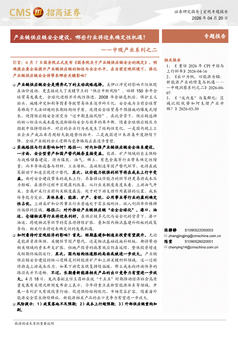 招商证券-中观产业系列之二:产业链供应链安全建设,哪些行业将迎来确定性机遇?-260420