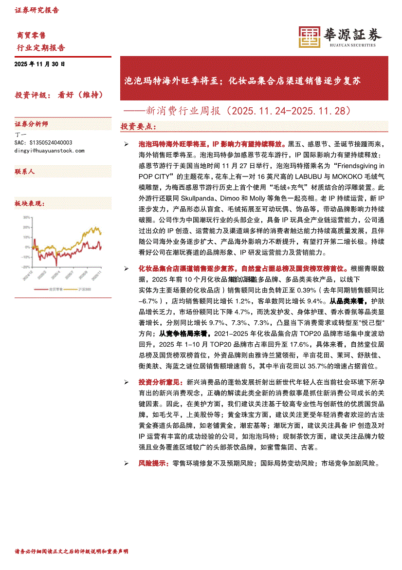 新消费行业:华源证券-新消费行业周报:泡泡玛特海外旺季将至;化妆品集合店渠道销售逐步复苏-251130