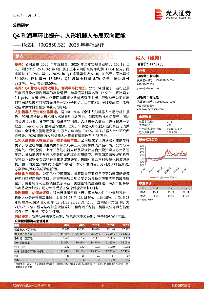 科达利:光大证券-科达利-002850-2025年年报点评:Q4利润率环比提升,人形机器人布局双向赋能-260331