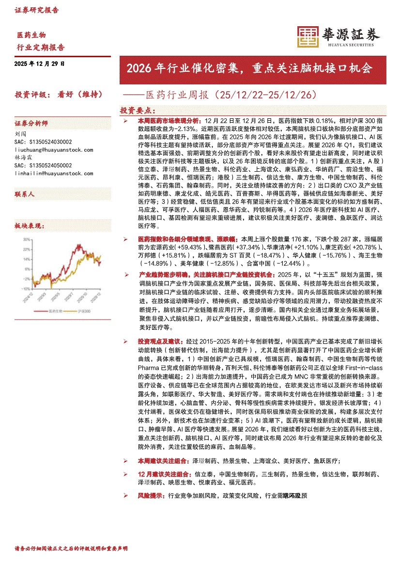 医药行业:华源证券-医药行业周报:2026年行业催化密集,重点关注脑机接口机会-251229