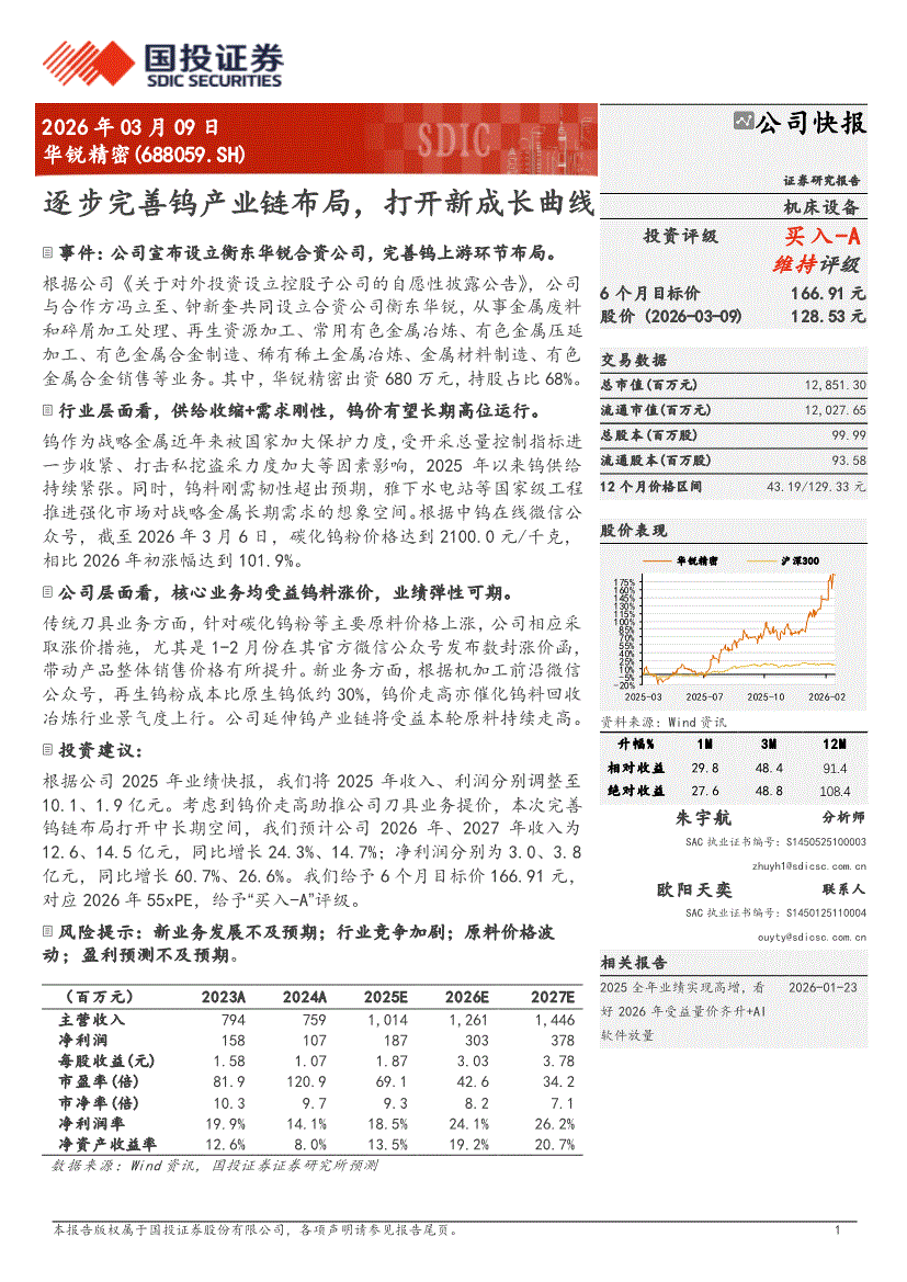 华锐精密:国投证券-华锐精密-688059-逐步完善钨产业链布局,打开新成长曲线-260309
