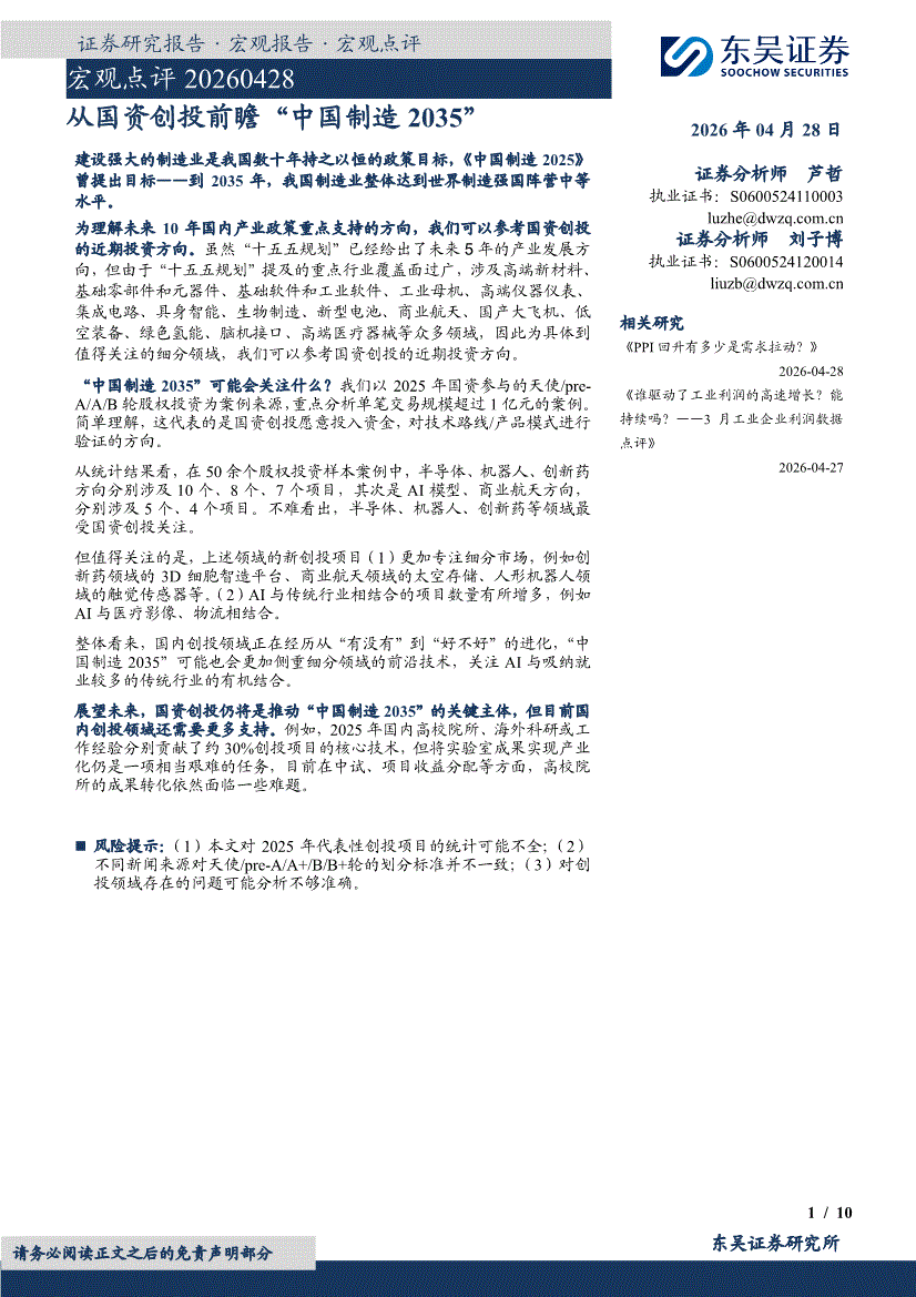 东吴证券-宏观点评:从国资创投前瞻“中国制造2035”-260428