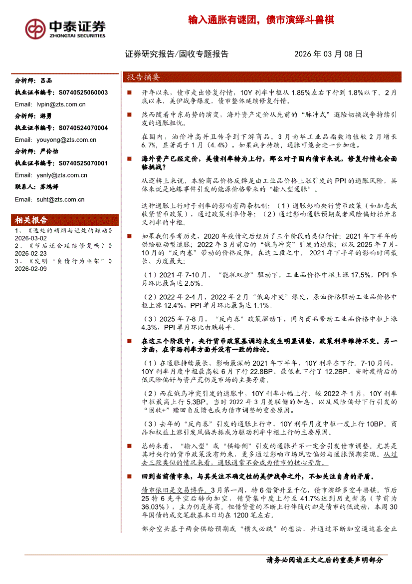 中泰证券-固收专题报告:输入通胀有谜团,债市演绎斗兽棋-260308