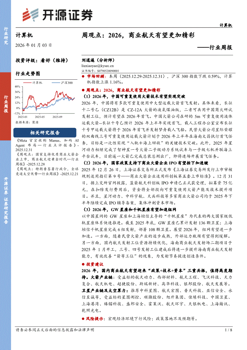 计算机行业:开源证券-计算机行业周观点:2026,商业航天有望更加精彩-260103