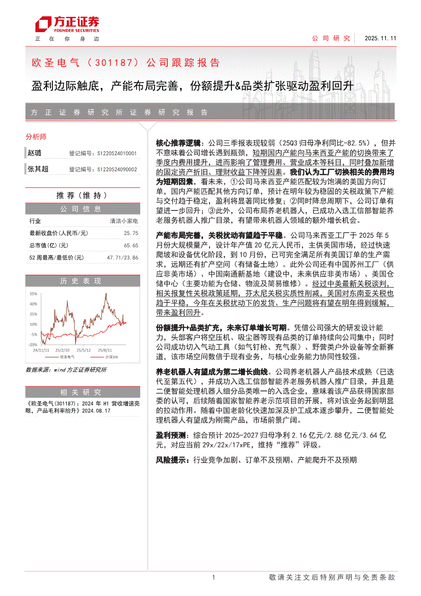 欧圣电气:方正证券-欧圣电气-301187-公司跟踪报告:盈利边际触底,产能布局完善,份额提升&品类扩张驱动盈利回升-251111