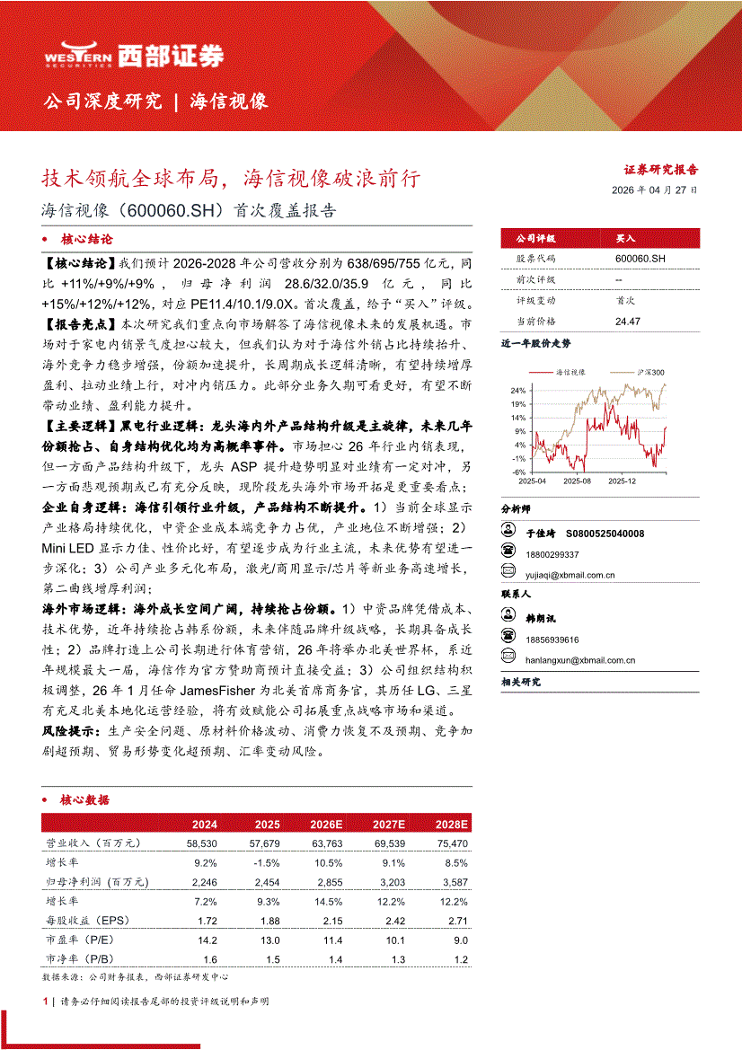 海信视像:西部证券-海信视像-600060-首次覆盖报告:技术领航全球布局,海信视像破浪前行-260427