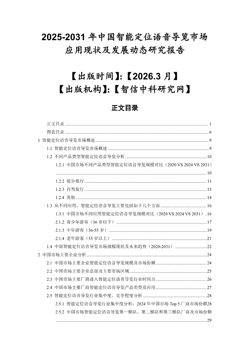 智能定位语音导览行业:智信中科研究网-2025~2031年中国智能定位语音导览行业市场应用现状及发展动态研究报告-260314