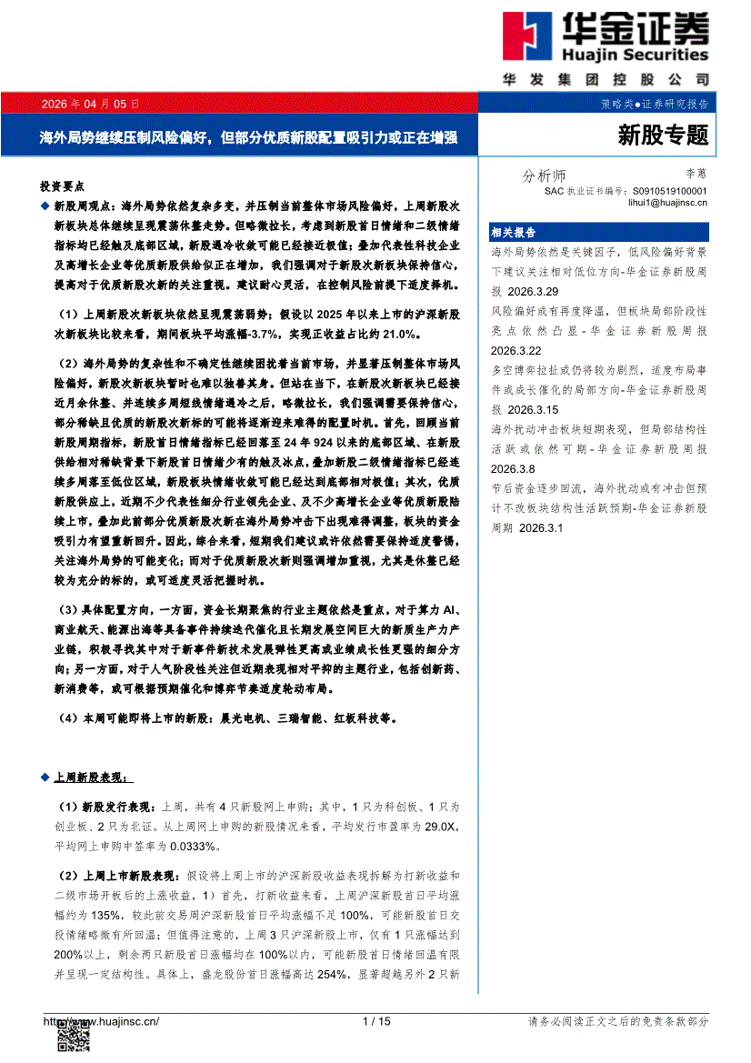 华金证券-新股专题:海外局势继续压制风险偏好,但部分优质新股配置吸引力或正在增强-260405