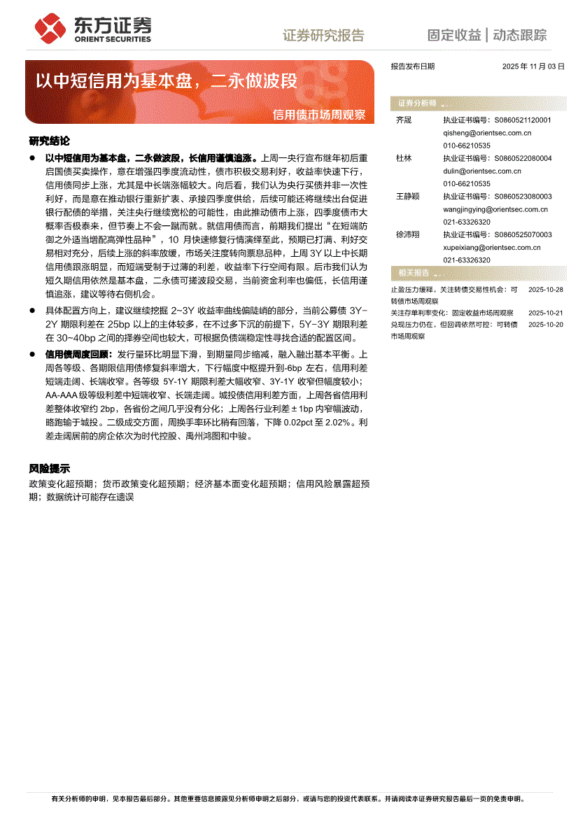 东方证券-信用债市场周观察:以中短信用为基本盘,二永做波段-251103
