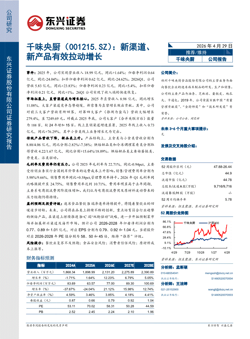 千味央厨:东兴证券-千味央厨-001215-新渠道、新产品有效拉动增长-260429