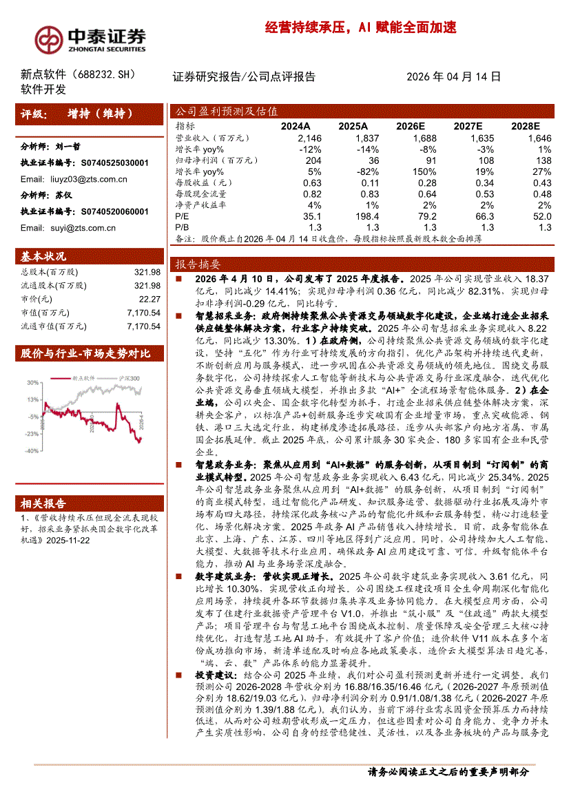 新点软件:中泰证券-新点软件-688232-经营持续承压,AI赋能全面加速-260414