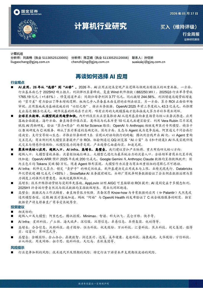 计算机行业:国金证券-计算机行业周报:再谈如何选择AI应用-260117