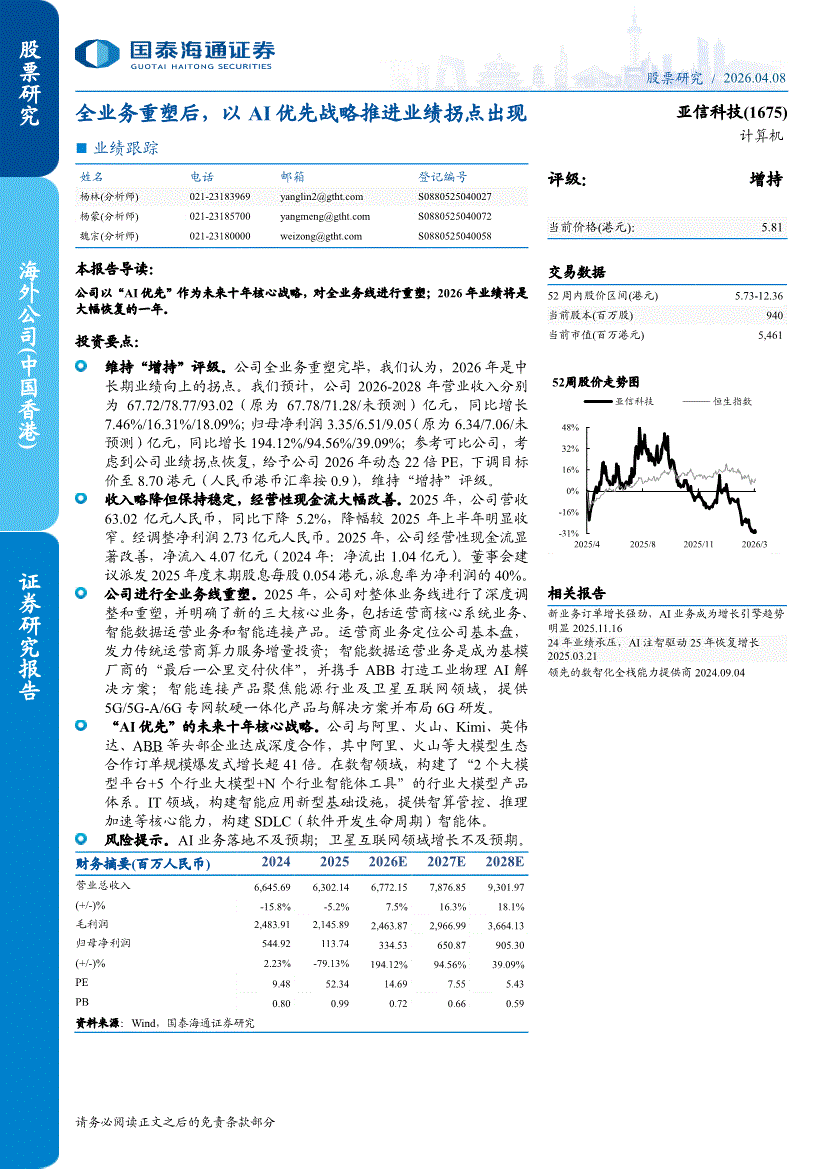 亚信科技:国泰海通证券-亚信科技-1675.HK-业绩跟踪:全业务重塑后,以AI优先战略推进业绩拐点出现-260408