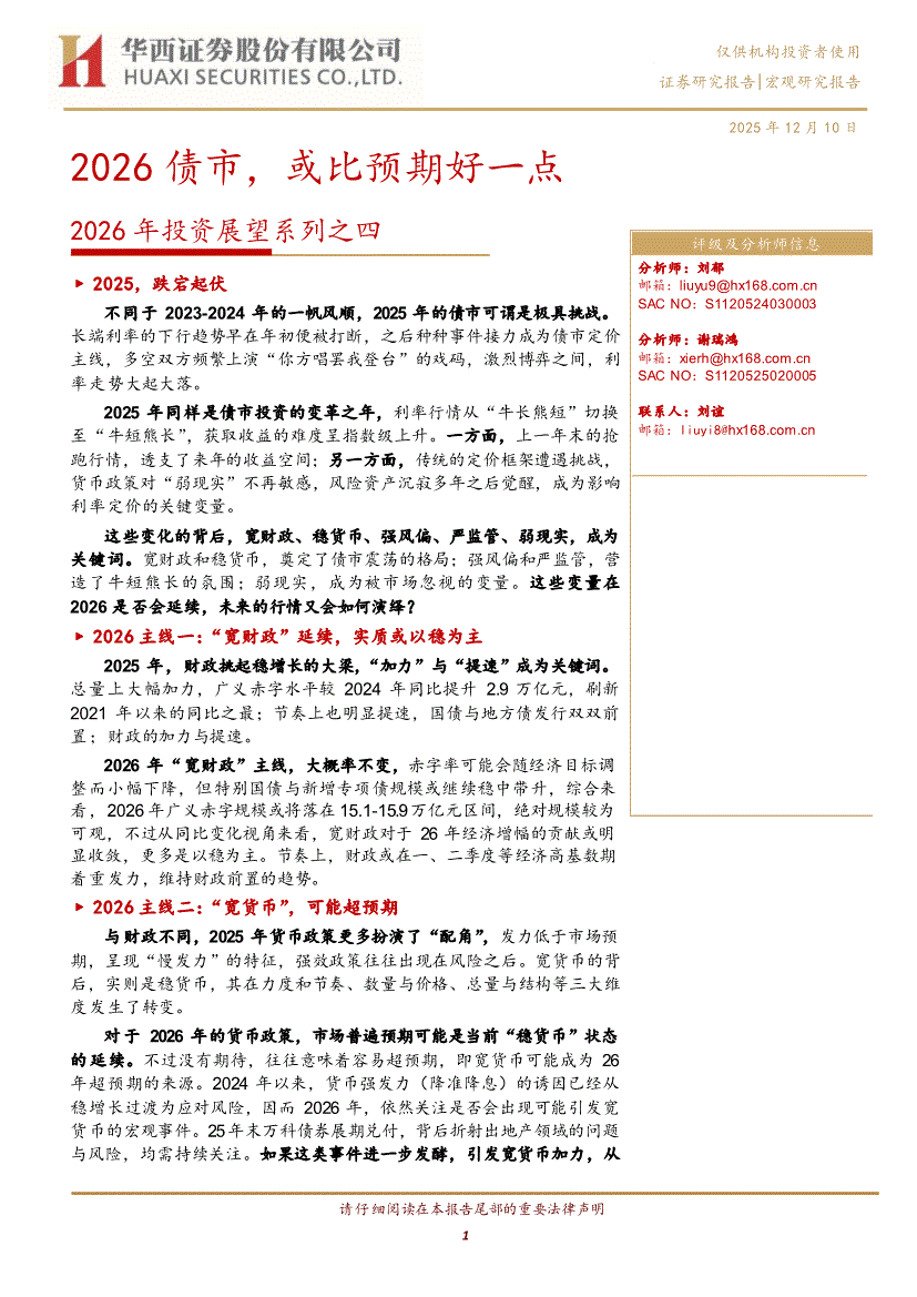 华西证券-2026年投资展望系列之四:2026债市,或比预期好一点-251210