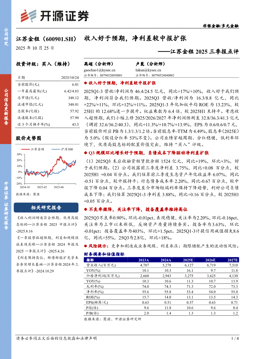 江苏金租:开源证券-江苏金租-600901-2025三季报点评:收入好于预期,净利差较中报扩张-251025