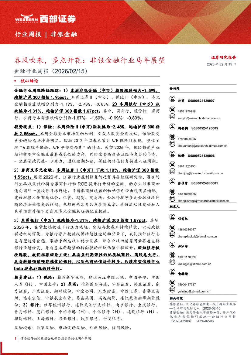 金融行业:西部证券-金融行业周报:春风吹来,多点开花,非银金融行业马年展望-260215