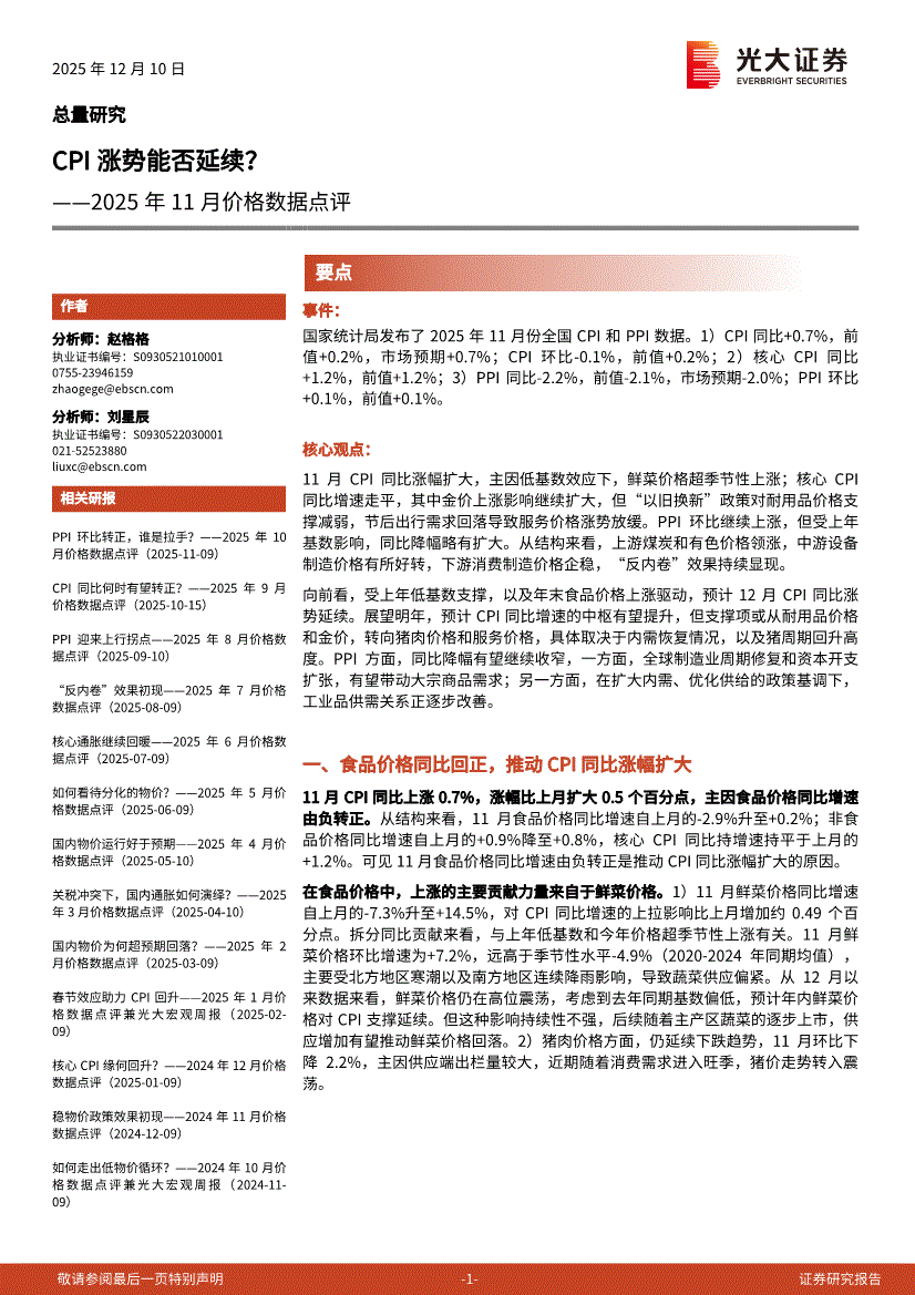 光大证券-2025年11月价格数据点评:CPI涨势能否延续?-251210