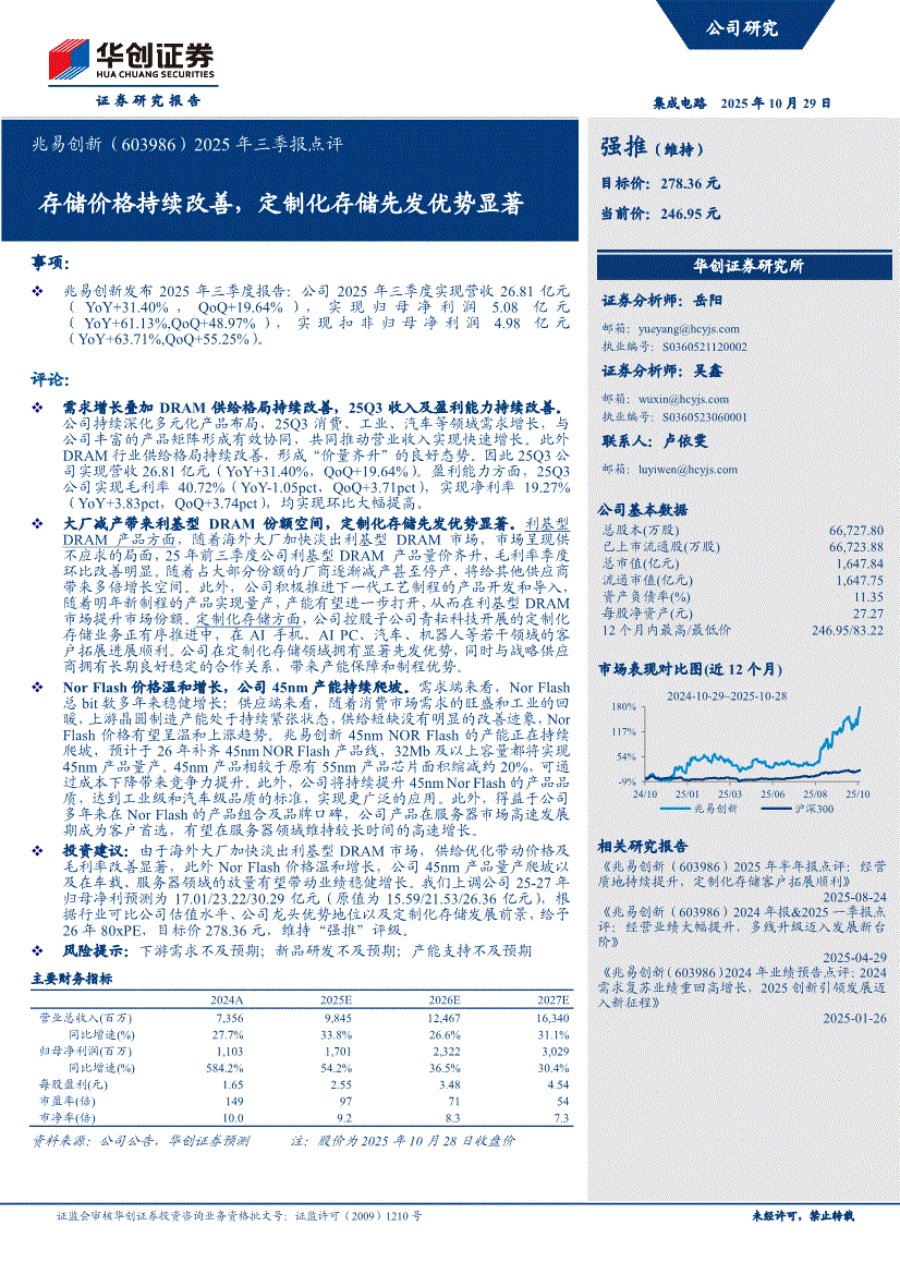 兆易创新:华创证券-兆易创新-603986-2025年三季报点评:存储价格持续改善,定制化存储先发优势显著-251029