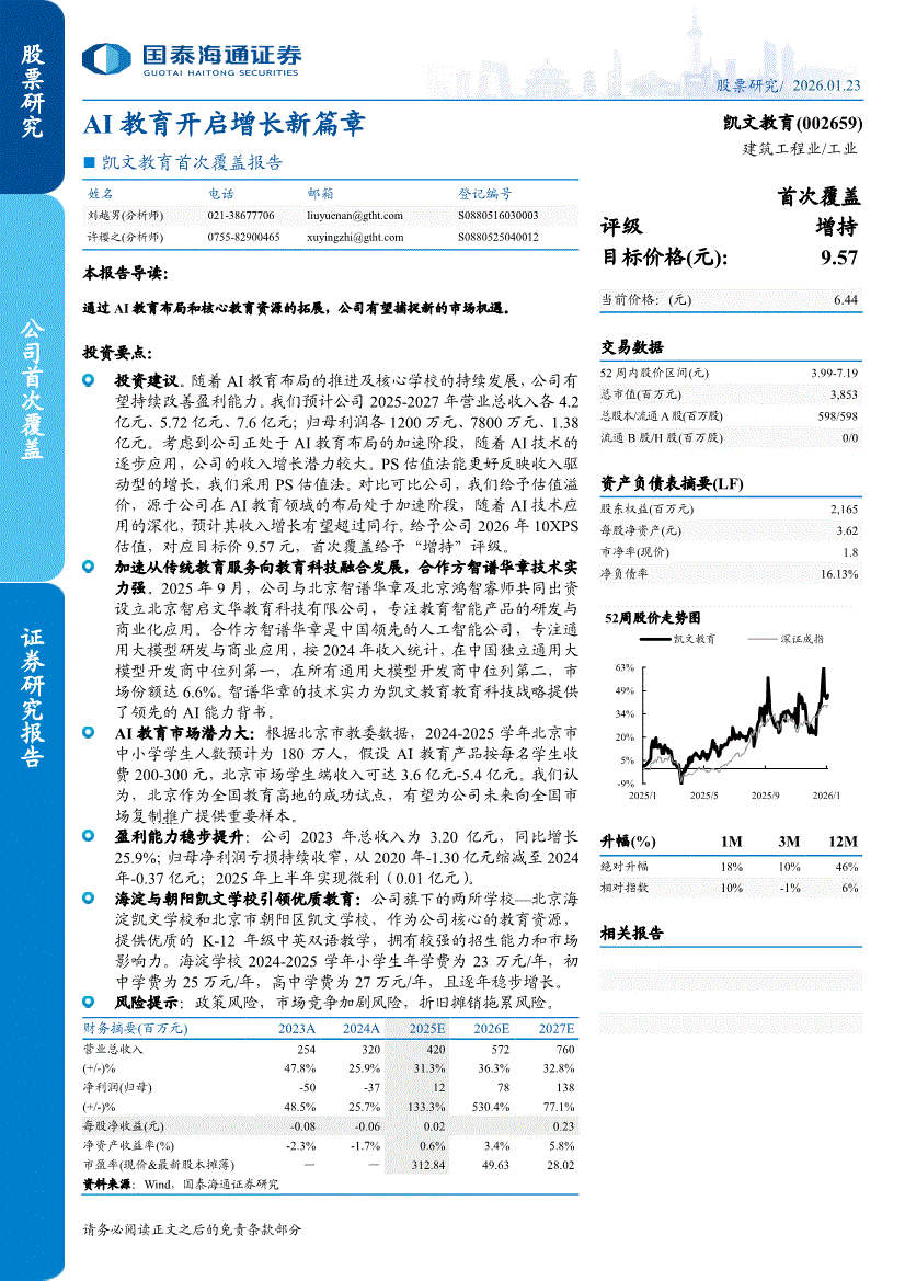 凯文教育:国泰海通证券-凯文教育-002659-首次覆盖报告:AI教育开启增长新篇章-260123