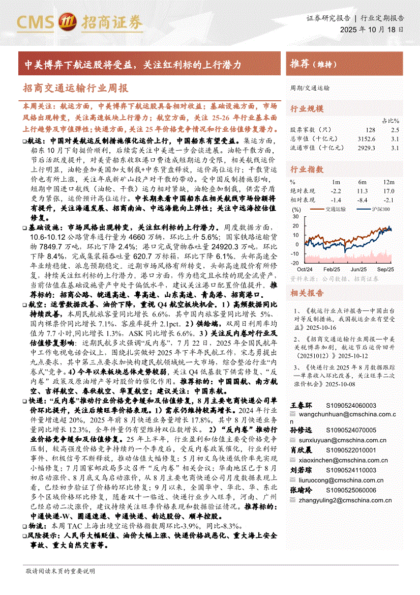 交通运输行业:招商证券-交通运输行业周报:中美博弈下航运股将受益,关注红利标的上行潜力-251018