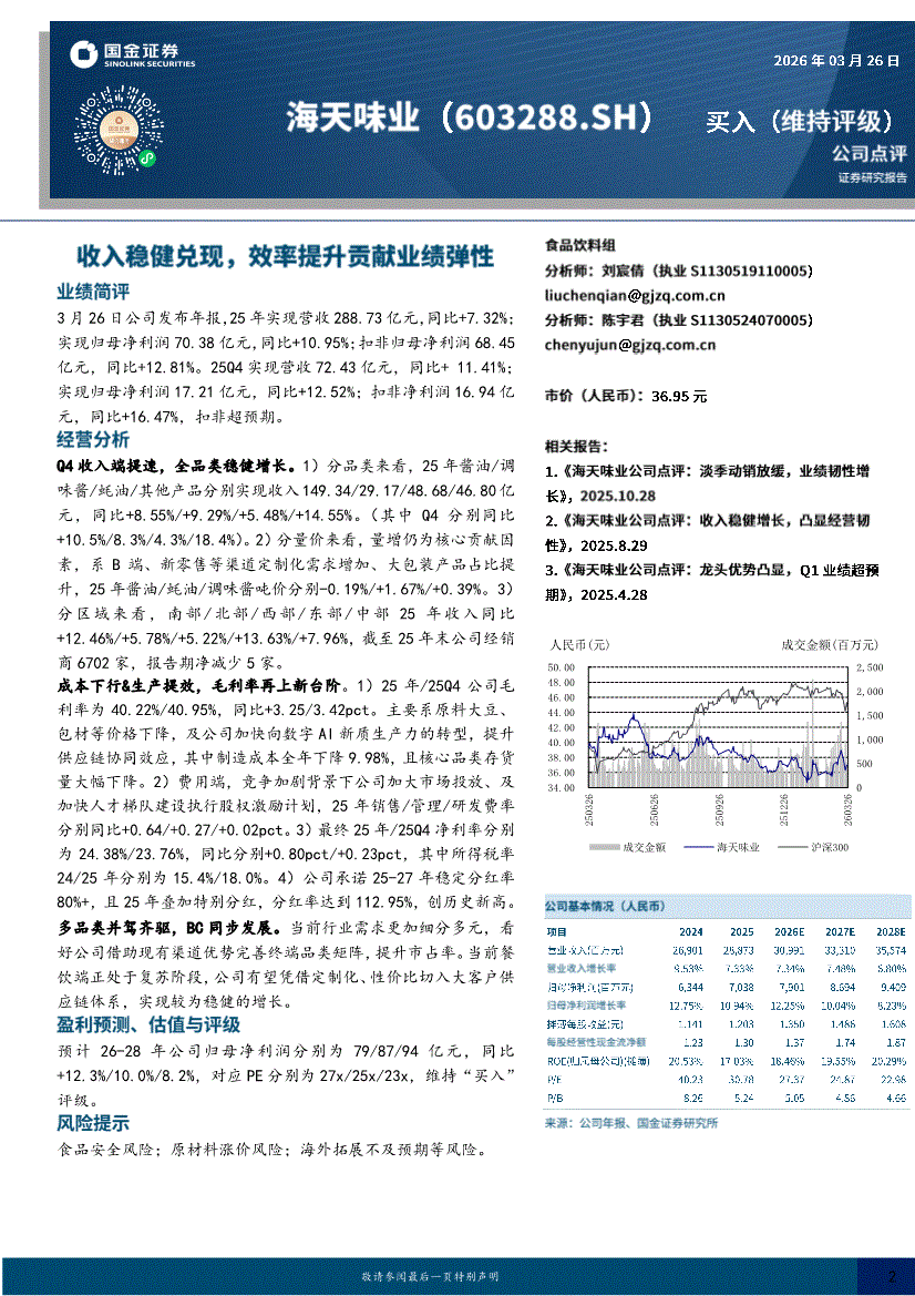 海天味业:国金证券-海天味业-603288-收入稳健兑现,效率提升贡献业绩弹性-260326