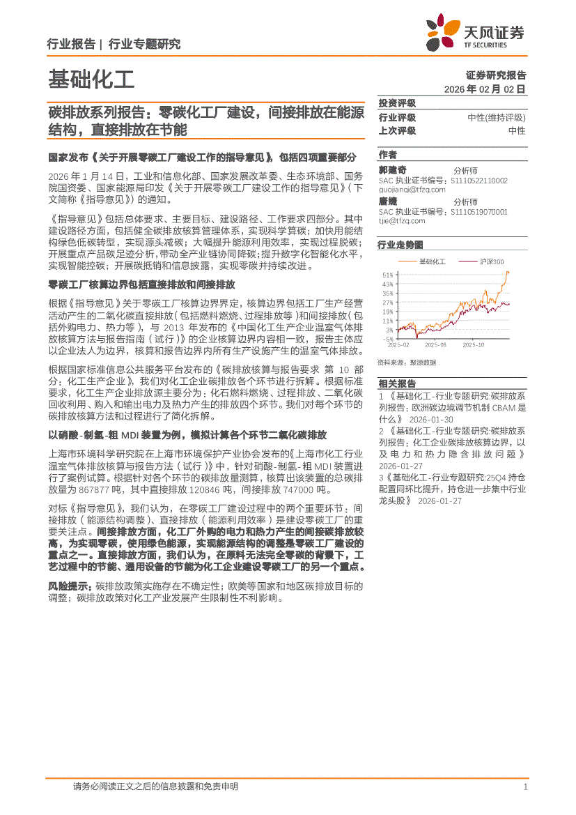 基础化工行业:天风证券-基础化工行业碳排放系列报告:零碳化工厂建设,间接排放在能源结构,直接排放在节能-260202