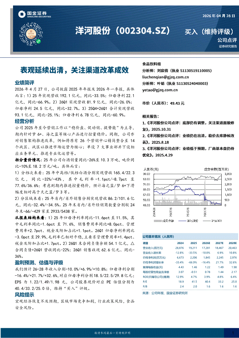 国金证券-洋河股份-002304-表观延续出清,关注渠道改革成效-260428