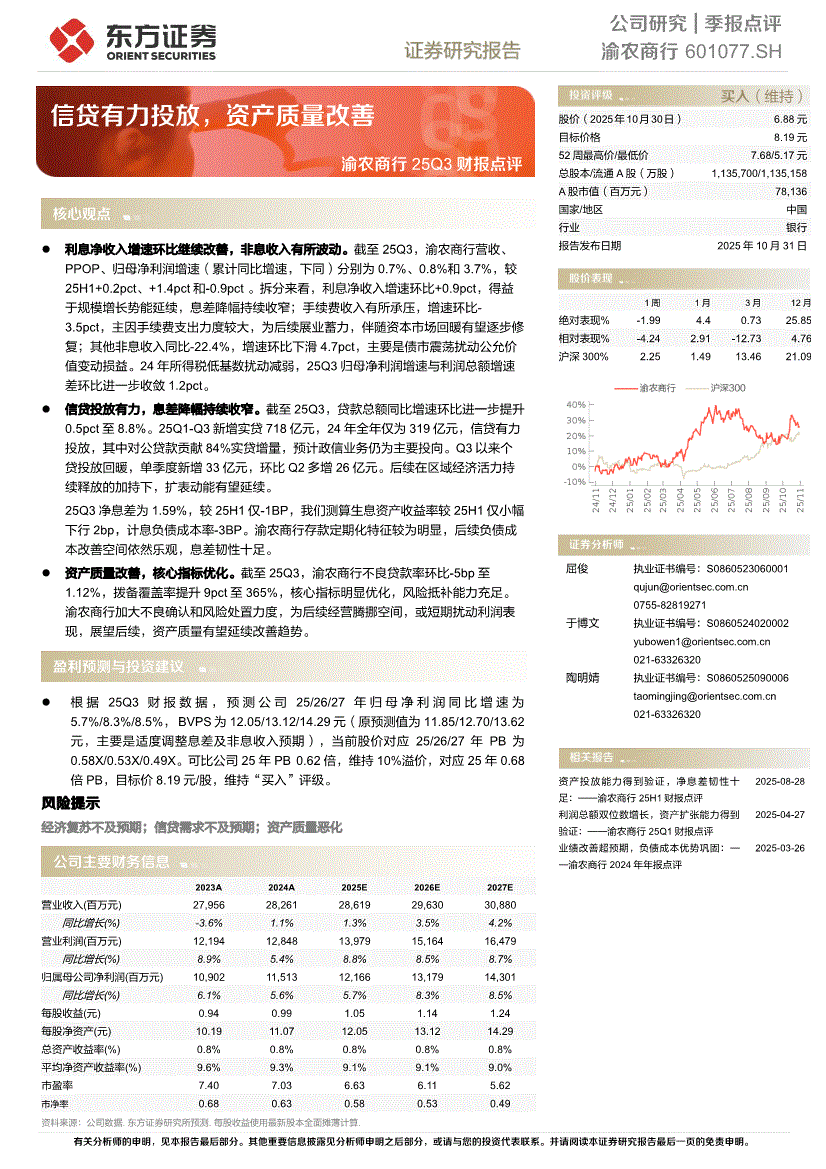 渝农商行:东方证券-渝农商行-601077-25Q3财报点评:信贷有力投放,资产质量改善-251031