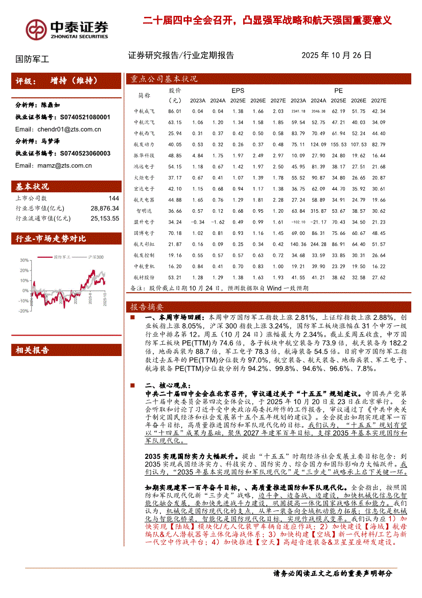 国防军工行业:中泰证券-国防军工行业:二十届四中全会召开,凸显强军战略和航天强国重要意义-251026
