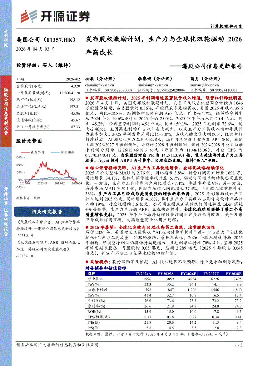 美图公司:开源证券-美图公司-1357.HK-港股公司信息更新报告:发布股权激励计划,生产力与全球化双轮驱动2026年高成长-260403