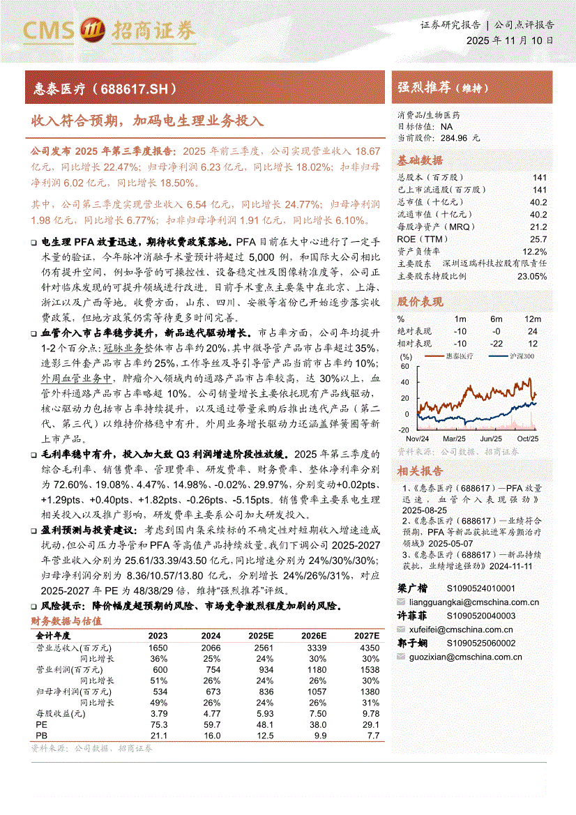 惠泰医疗:招商证券-惠泰医疗-688617-收入符合预期,加码电生理业务投入-251110