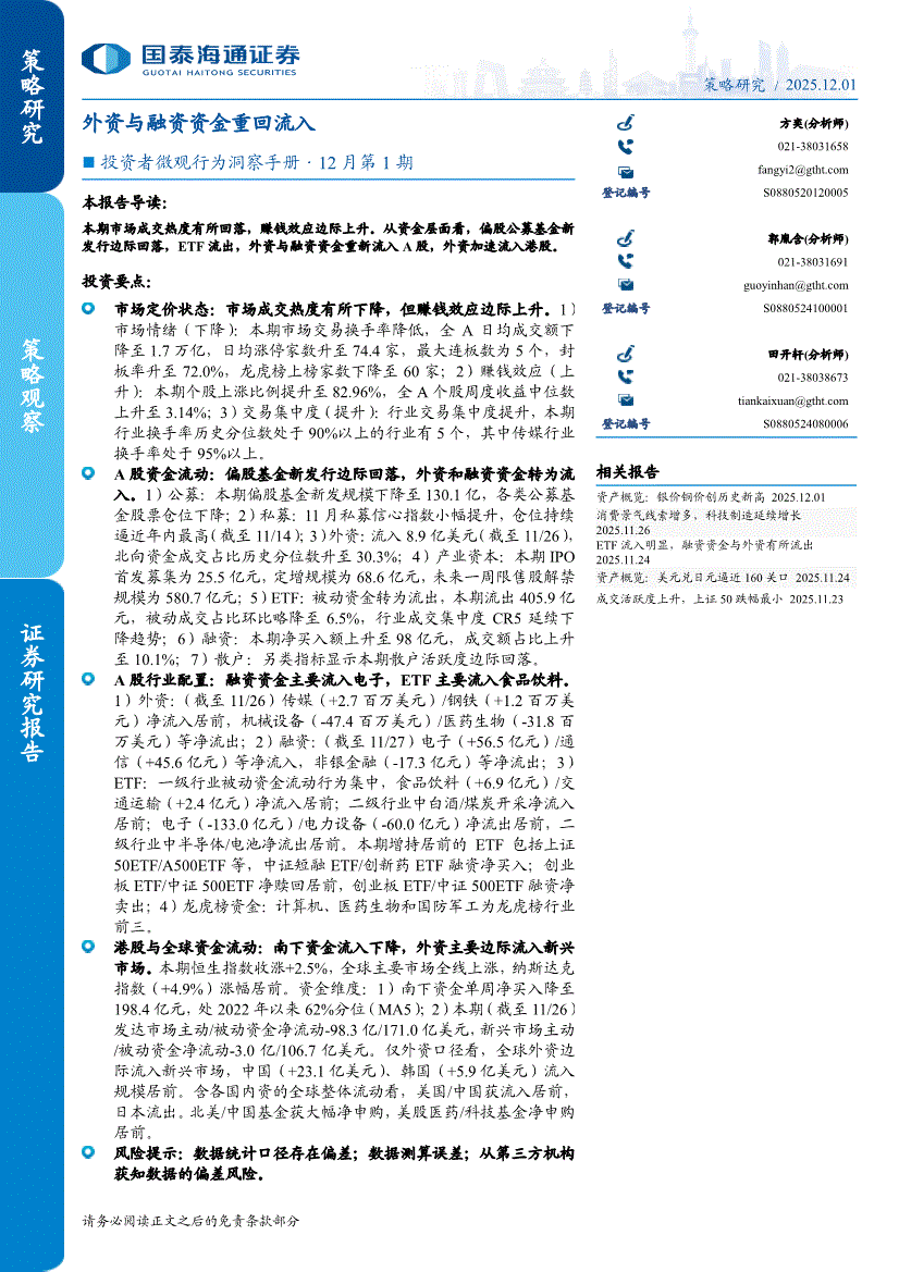 国泰海通证券-投资者微观行为洞察手册·12月第1期:外资与融资资金重回流入-251201