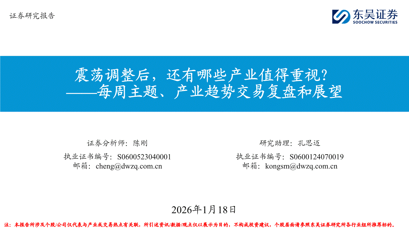 东吴证券-每周主题、产业趋势交易复盘和展望:震荡调整后,还有哪些产业值得重视?-260118
