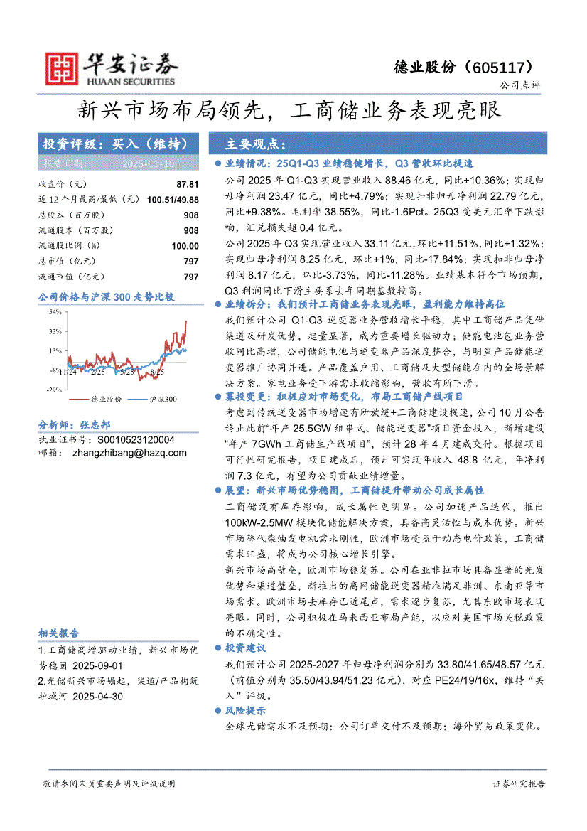 德业股份:华安证券-德业股份-605117-新兴市场布局领先,工商储业务表现亮眼-251110