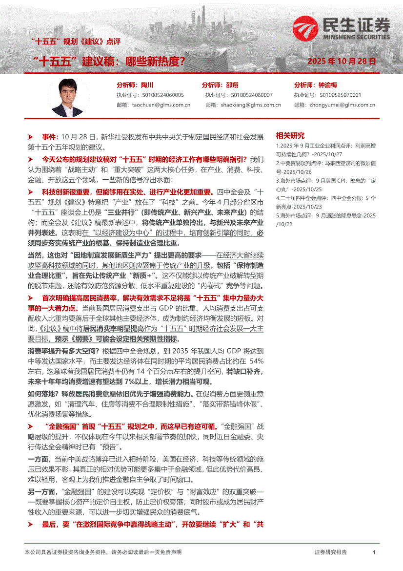 民生证券-“十五五”规划《建议》点评:“十五五”建议稿,哪些新热度?-251028