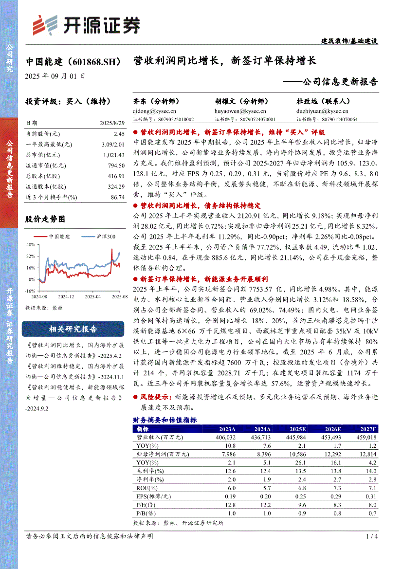 中国能建:开源证券-中国能建-601868-公司信息更新报告:营收利润同比增长,新签订单保持增长-250901