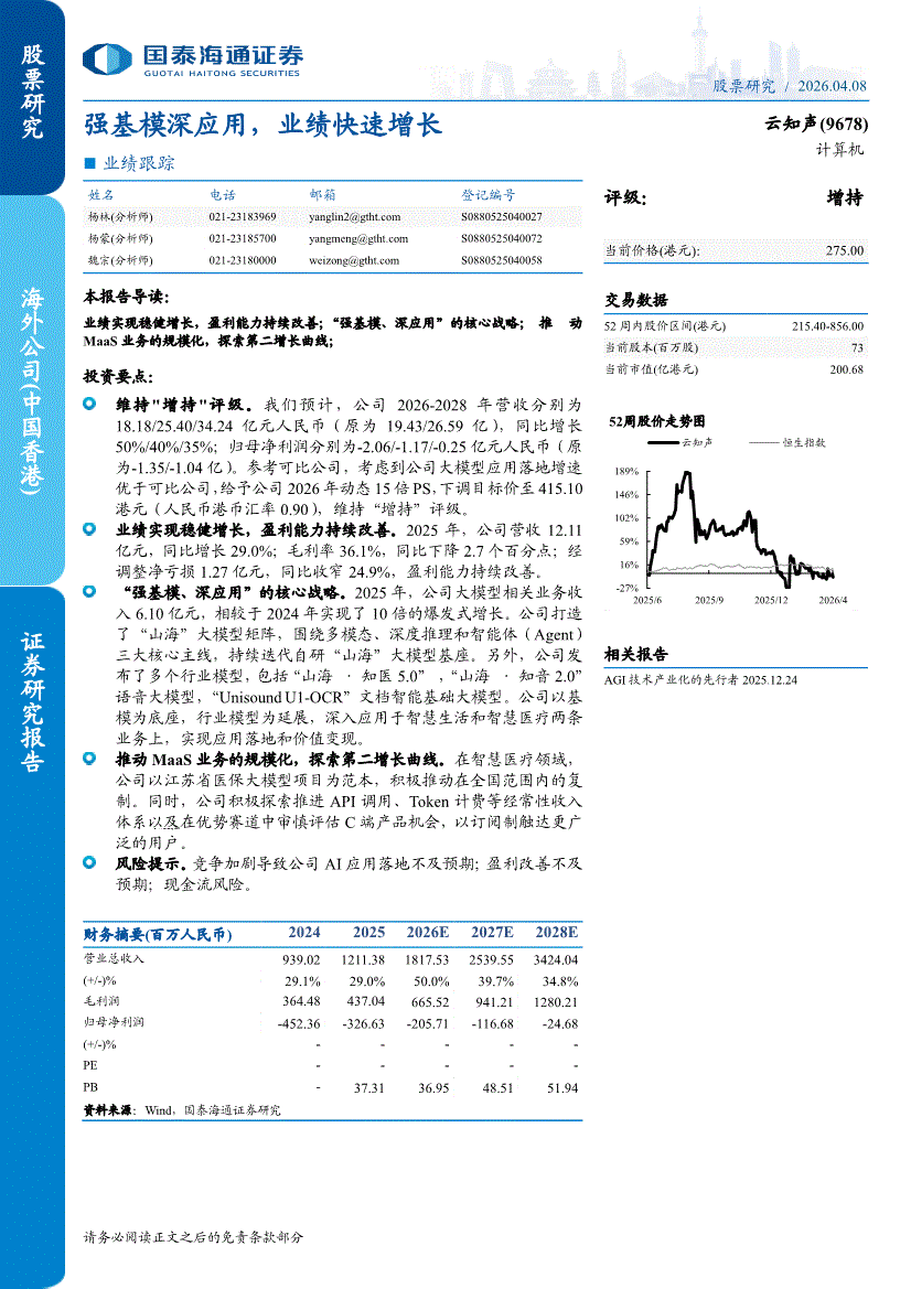 云知声:国泰海通证券-云知声-9678.HK-业绩跟踪:强基模深应用,业绩快速增长-260408