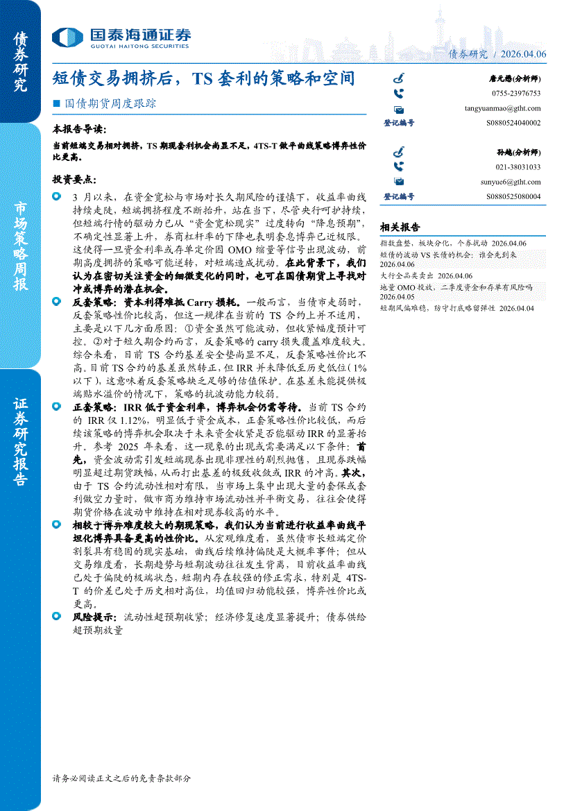国泰海通证券-国债期货周度跟踪:短债交易拥挤后,TS套利的策略和空间-260406