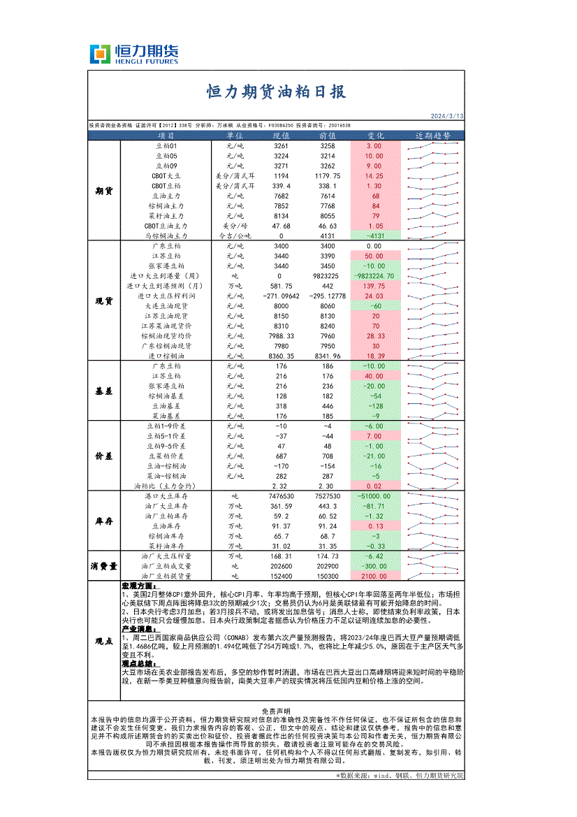 恒力期货-油粕日报-240313