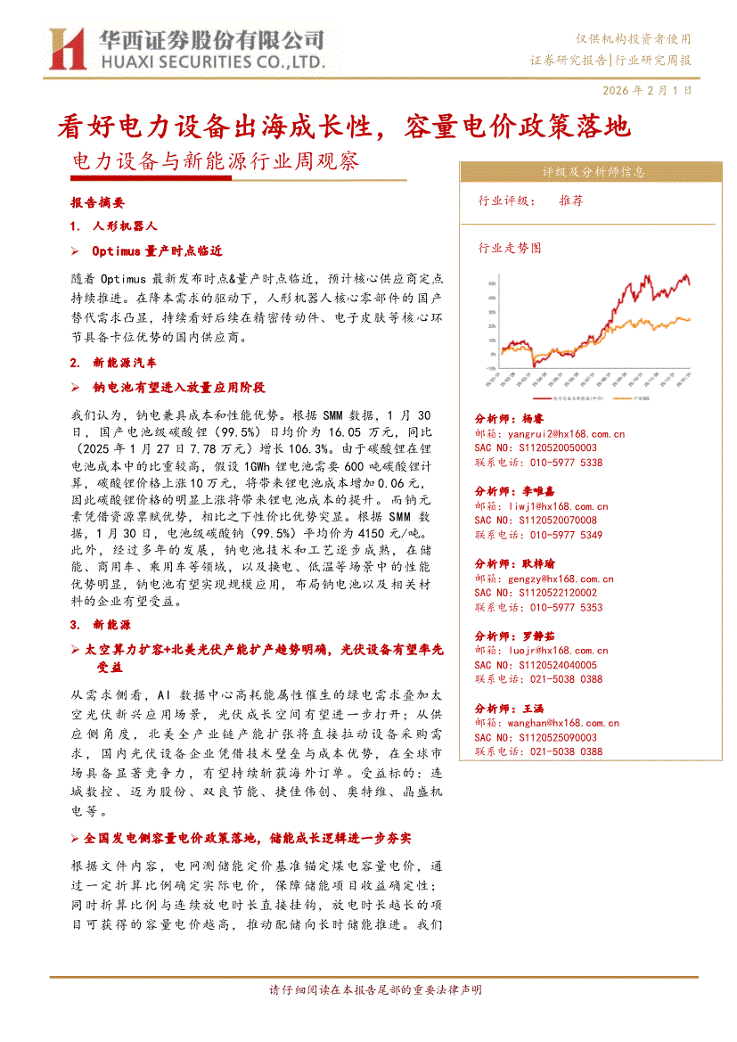 电力设备与新能源行业:华西证券-电力设备与新能源行业周观察:看好电力设备出海成长性,容量电价政策落地-260201
