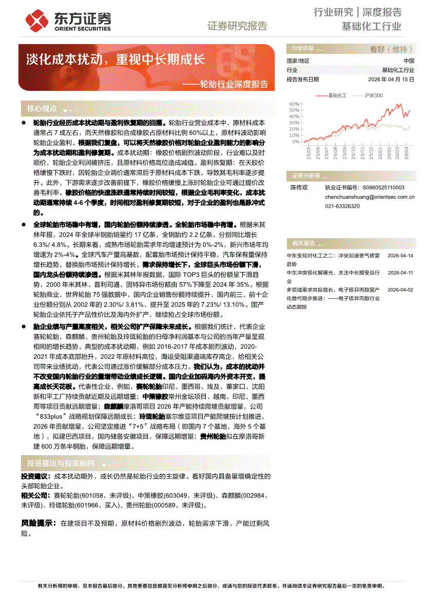 基础化工行业:东方证券-轮胎行业深度报告:淡化成本扰动,重视中长期成长-260415